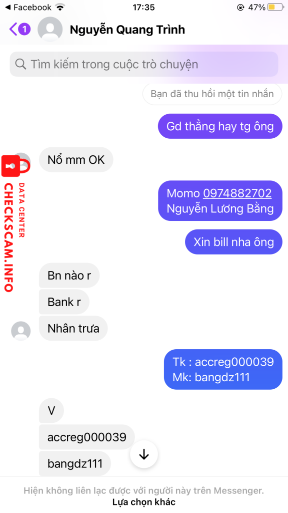 Alerte d'arnaqueur: Nguyễn Quang Trình