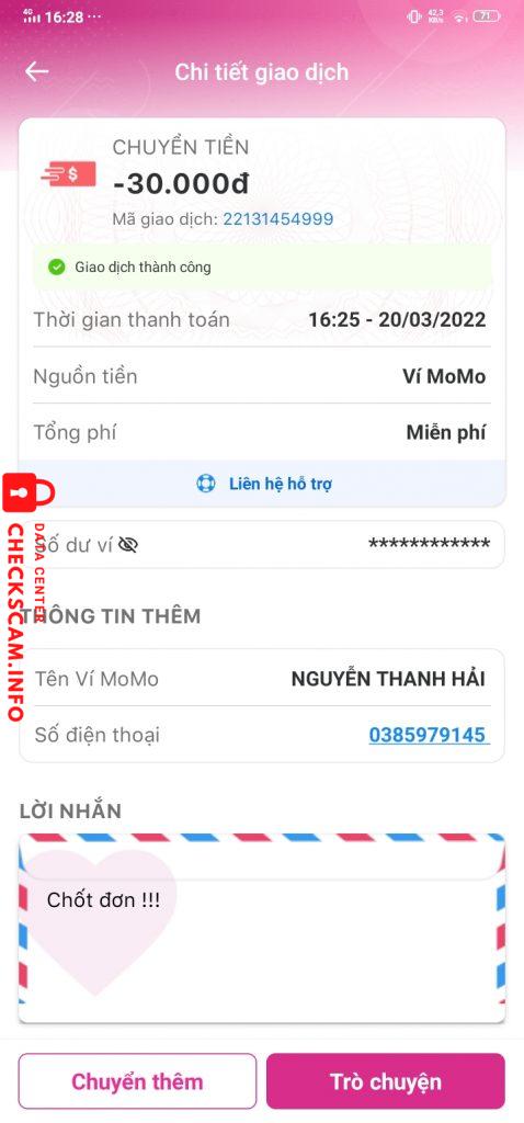 Alerte d'arnaqueur: Nguyễn Thanh Hải