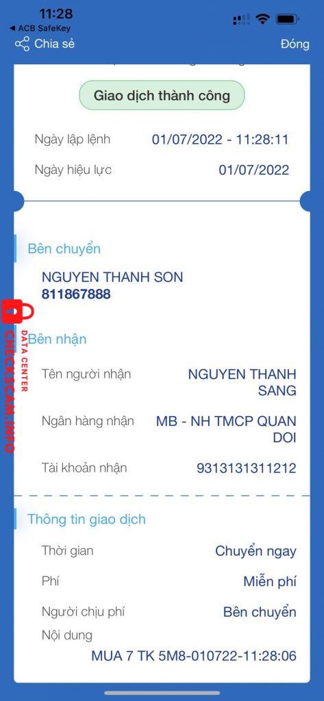 Alerte d'arnaqueur: Nguyễn Thanh Sang