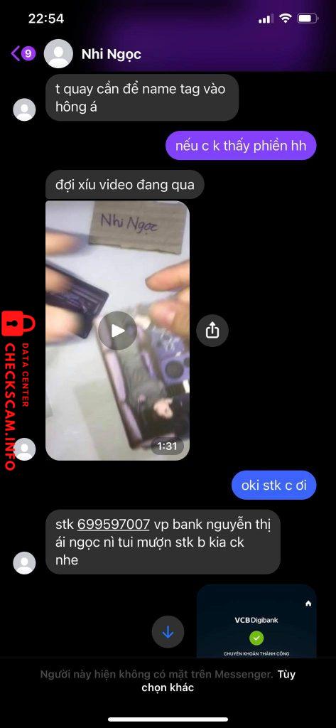 Alerte d'arnaqueur: Nguyễn Thị Ái Ngọc
