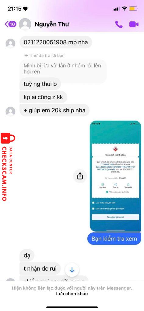 Alerte d'arnaqueur: NGUYEN THI ANH THU