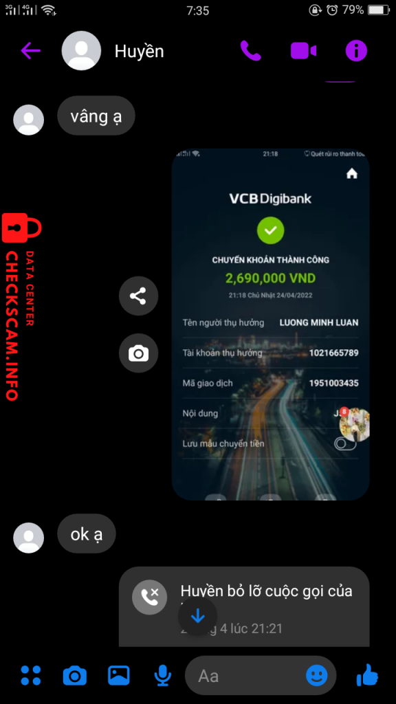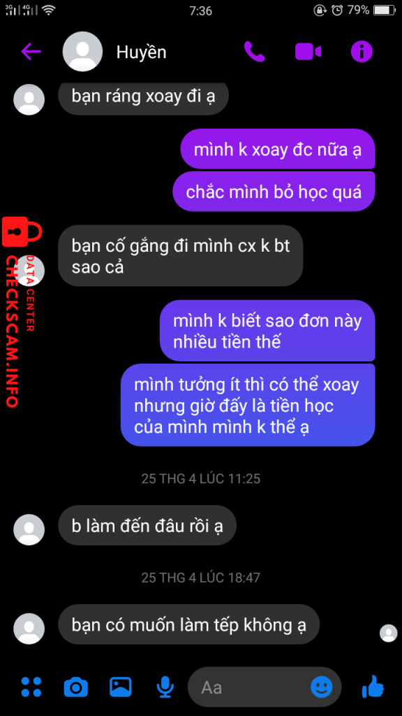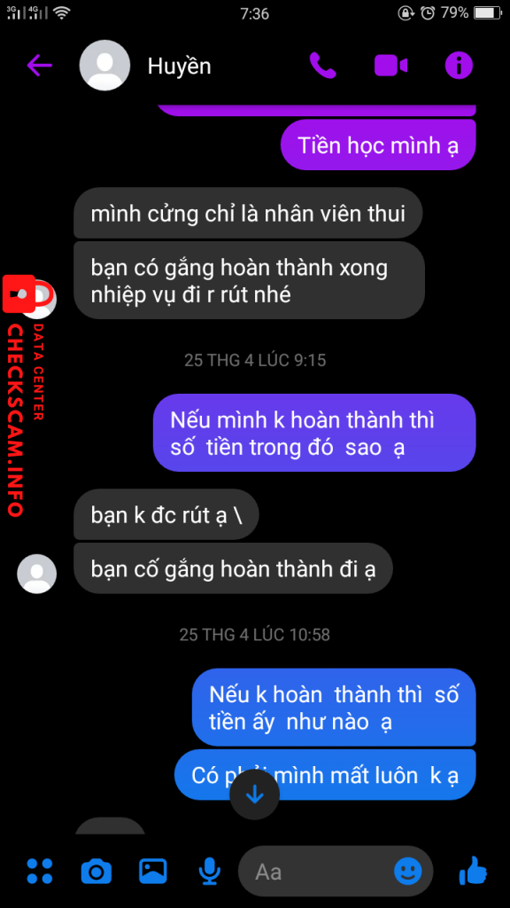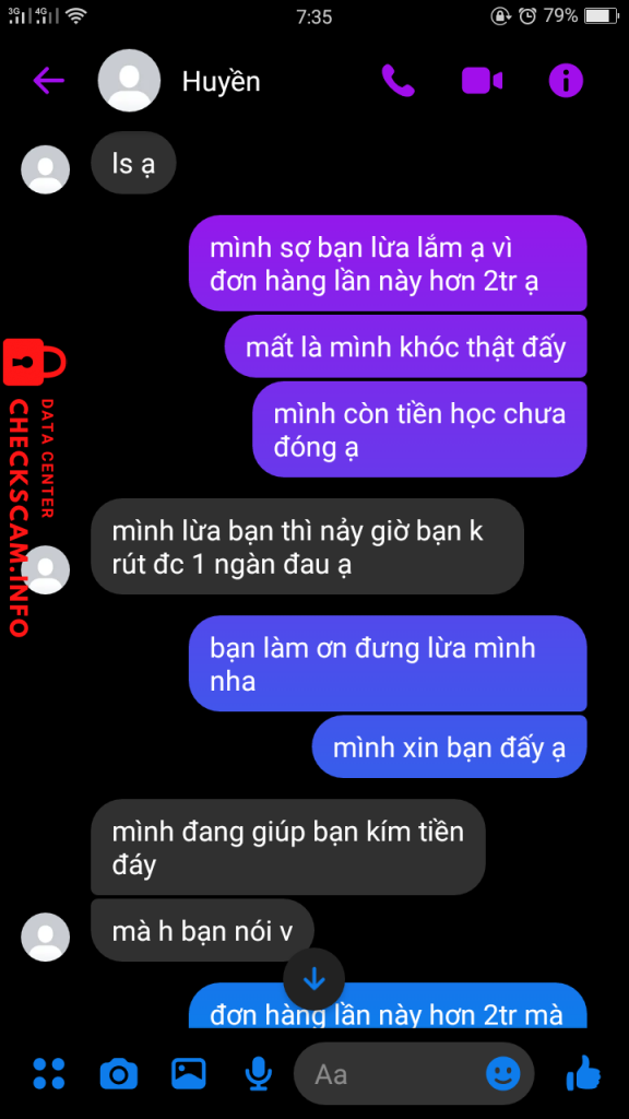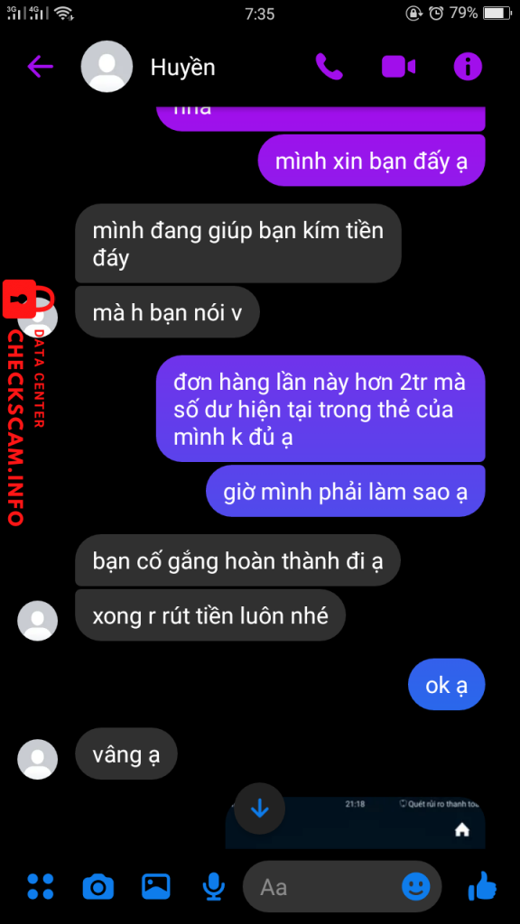 Ních facebook Ngọc Huyền đã lừa tôi công việc chốt đơn ảo trên web sen đỏ (mà họ cung cấp đường link cho tôi )khi tôi kiếm việc online. Họ bảo tôi làm nhiệm vụ mỗi nhiễm vụ sẽ là 3 đơn sau khi hoàn thành 3 đơn thì sẽ được rút tiền, nhưng khi tôi làm khoảng 3 nhiệm vụ sau mỗi nhiệm vụ họ lại tăng thêm 1 đơn , và số tiền tôi gửi cho họ là 4.271.000đ( bốn triệu hai trăm bảy mốt nghìn ) .Lúc đấy tôi đã nghi ngờ và rồi sau đấy có 1 đơn hơn 7 triệu đồng, thì tôi thấy số tiền hơi lớn đối với bản thân, và có cố gắng bảo người đó gọi cho tôi xác nhận là tôi có bị lừa không thì họ mua sim và cho tôi số, tôi gọi thì họ bắt máy nhưng bảo là phải xong nhiệm vụ mới được rút tiền. Lúc này tôi biết đã bị lừa, và khi tôi gọi lại thì khoá máy, không gọi được.