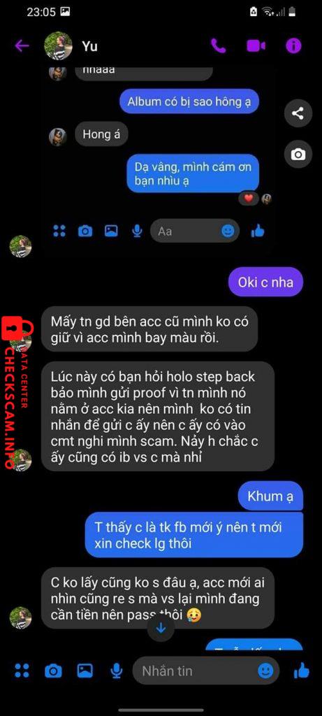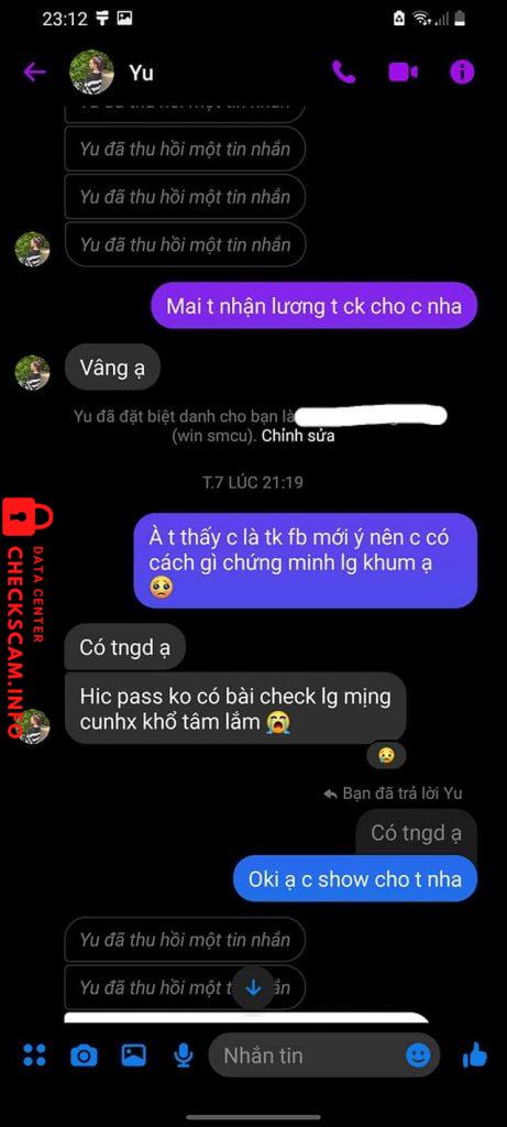 Bạn Yu Jimin vào ngày 4/6 có đăng bài pass card, mình có ib hỏi mua và thấy “tài khoản facebook mới”. Sau đó mình có hỏi bạn các thứ thì thấy bạn bảo rằng bạn bị mất nick. Mình cũng tin tưởng bạn và tiếp tục giao dịch với bạn.