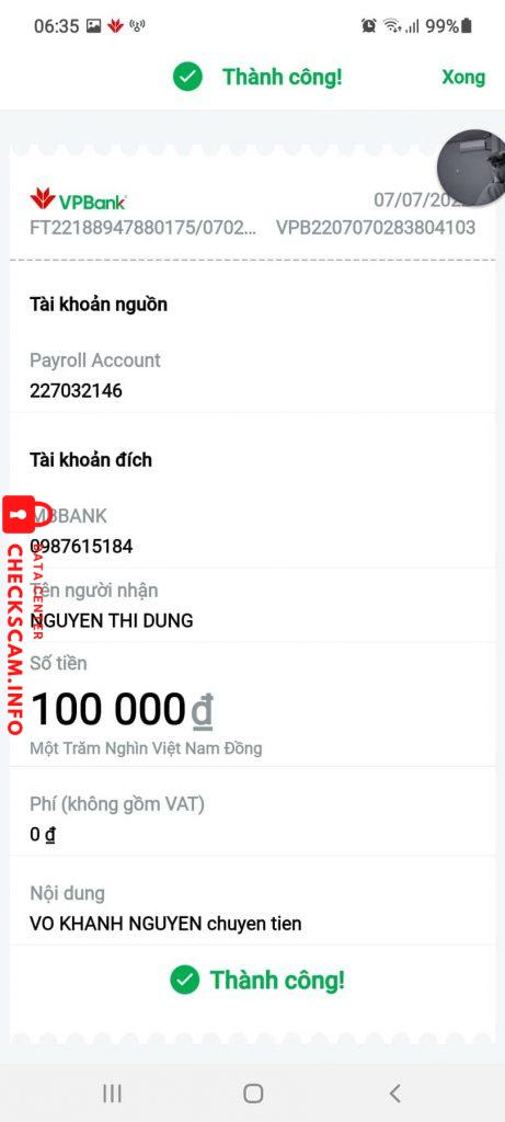Alerte d'arnaqueur: Nguyen Thi Dung