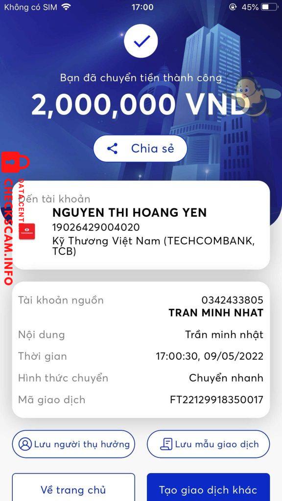 Alerte d'arnaqueur: NGUYEN THI HOANG YEN