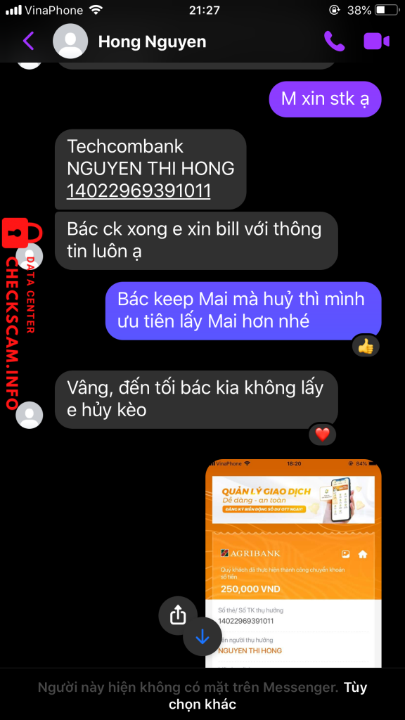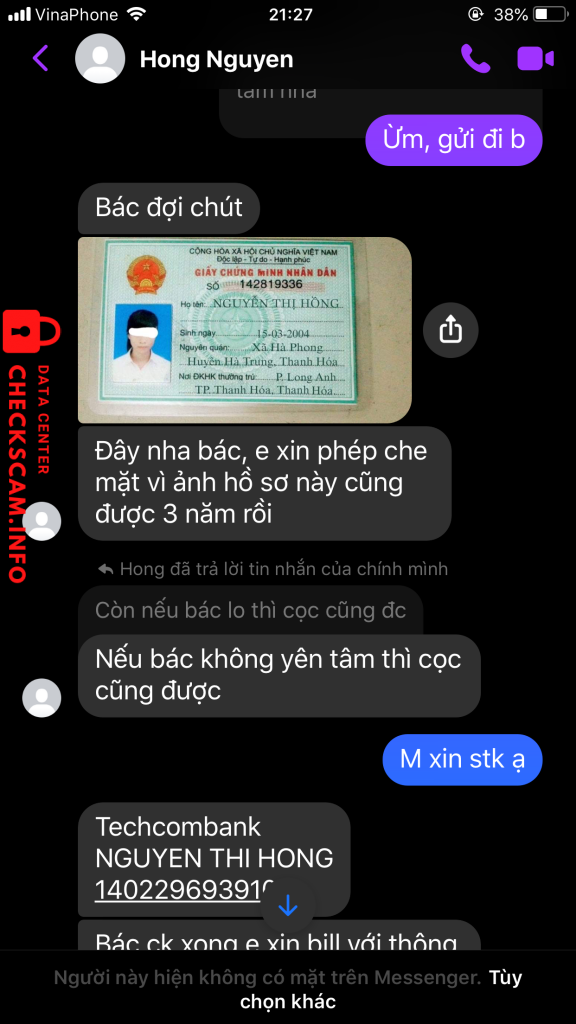 Alerte d'arnaqueur: NGUYEN THI HONG