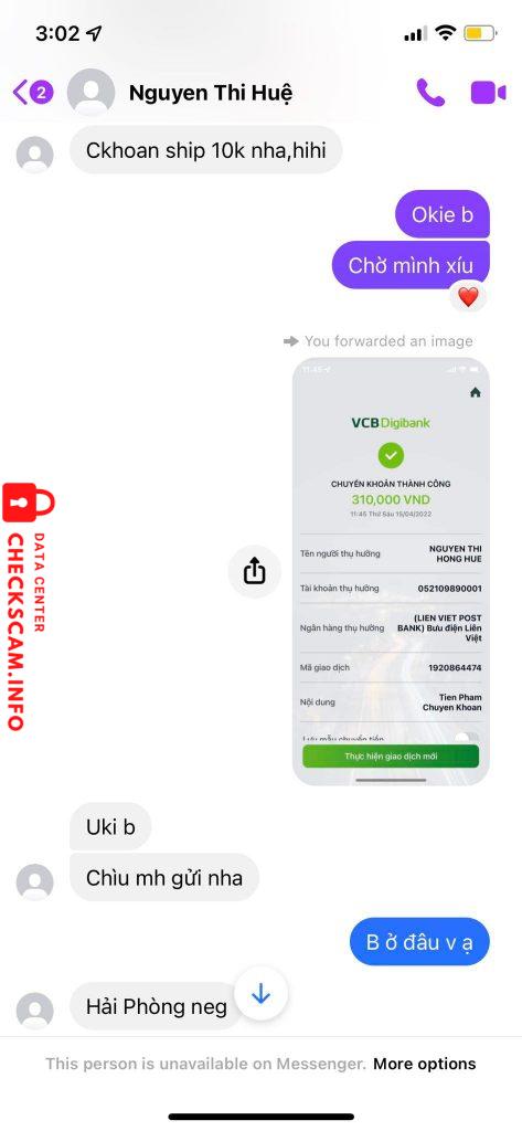 Alerte d'arnaqueur: Nguyễn Thị Hồng Huệ