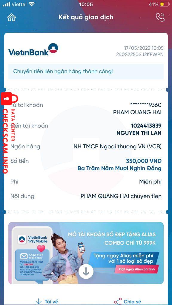 Alerte d'arnaqueur: Nguyen Thi Lan