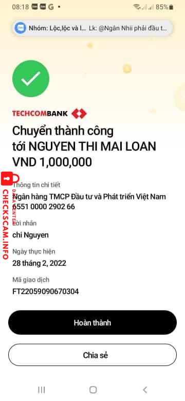 Alerte d'arnaqueur: NGUYỄN THỊ MAI LOAN