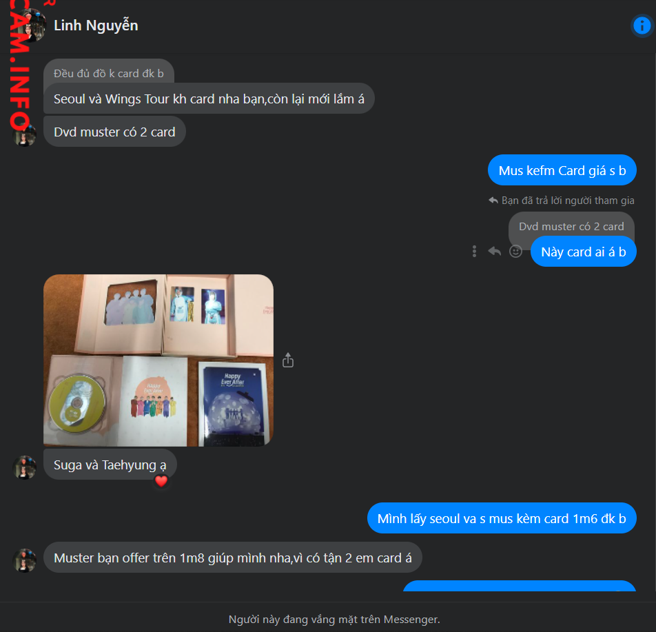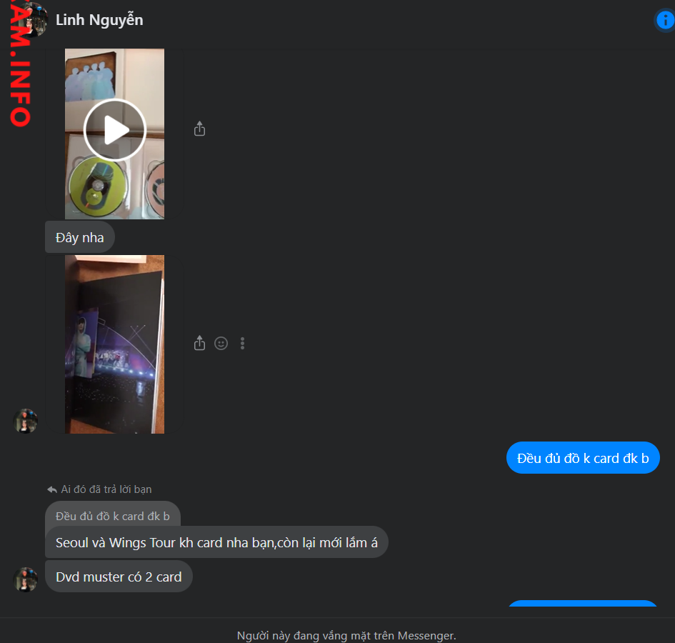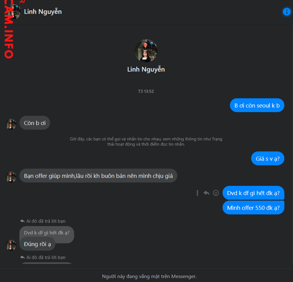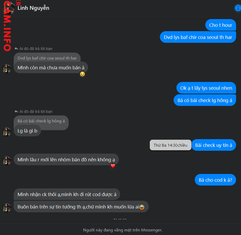 Linh nguyễn đăng bài bán các dvd seoul, mus, london,… ck xong thì qua 2 ngày thì khóa acc luôn hiện tại đã scam 3 người 1.500.000. vì