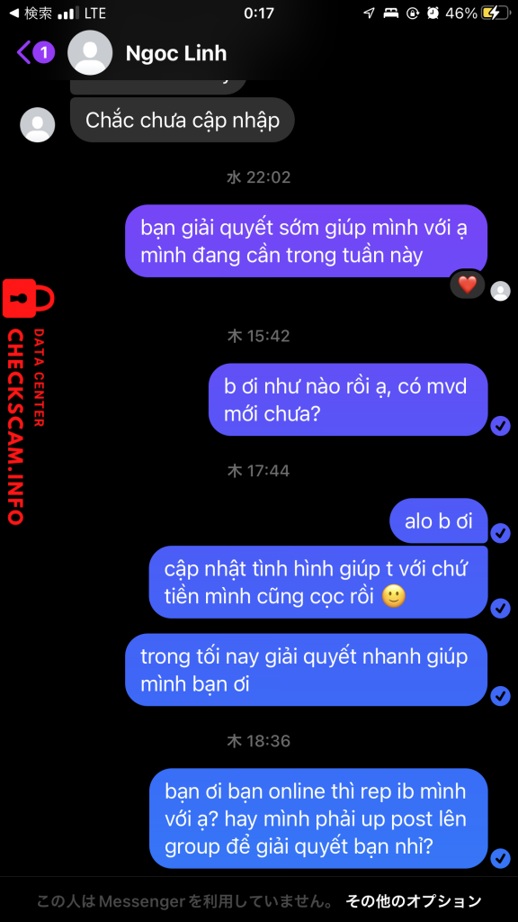 Alerte d'arnaqueur: NGUYEN THI NGOC LINH