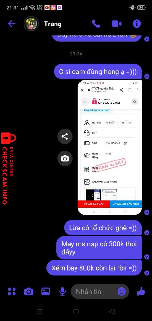 Alerte d'arnaqueur: Nguyen Thi Thuy Trang