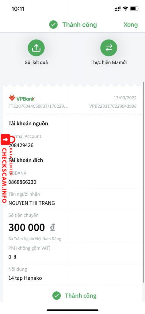 Alerte d'arnaqueur: NGUYỄN THỊ TRANG