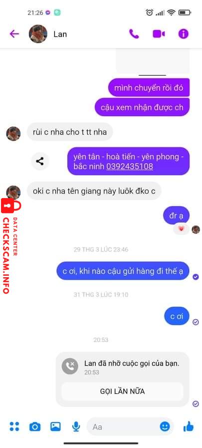 Alerte d'arnaqueur: NGUYEN THUY LINH