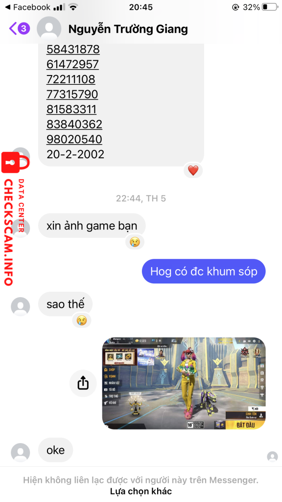 Alerte d'arnaqueur: Nguyễn trường Giang