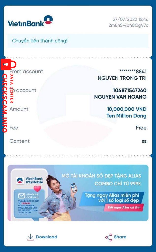 Alerte d'arnaqueur: NGUYỄN VĂN HOÀNG
