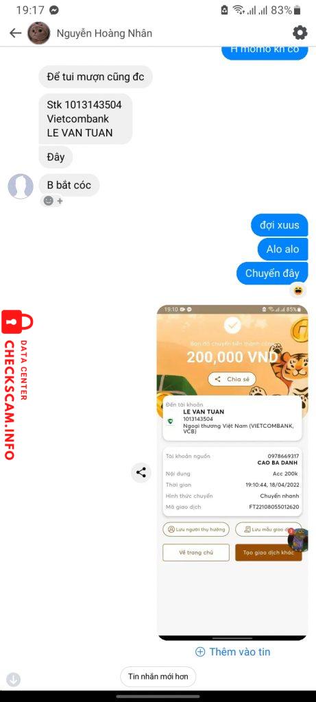 Alerte d'arnaqueur: Nguyễn Văn Hoàng Nhân