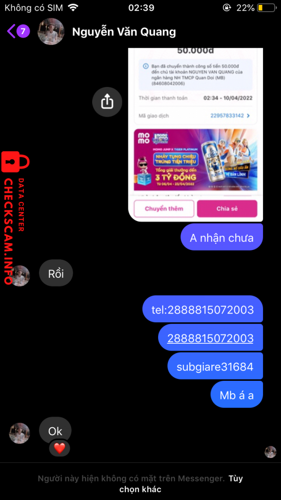 Alerte d'arnaqueur: Nguyễn Văn Quang