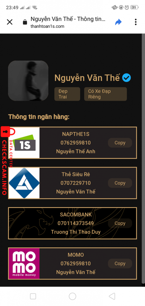 Alerte d'arnaqueur: NGUYEN VAN THE
