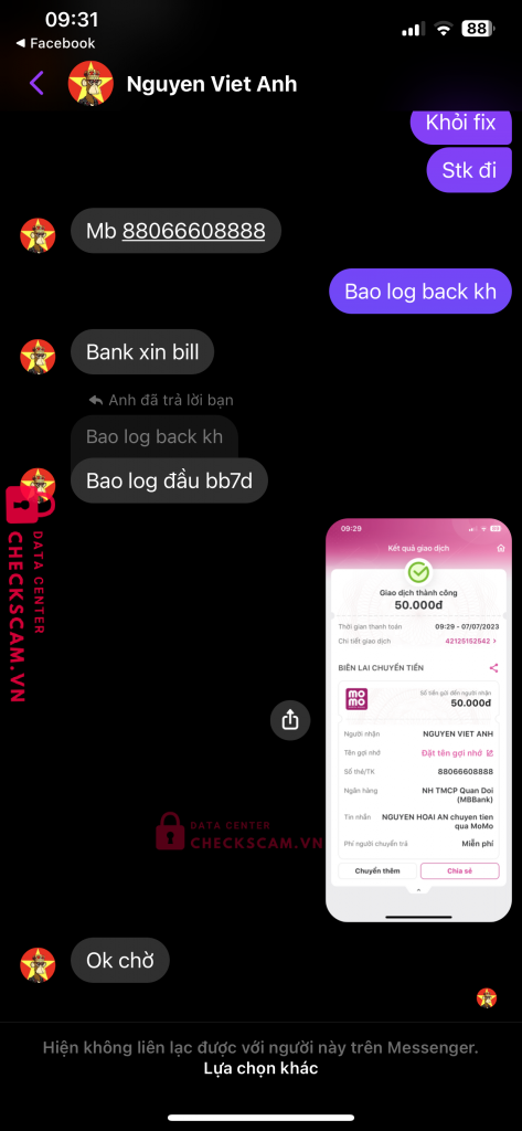 Alerte d'arnaqueur: NGUYEN VIET ANH