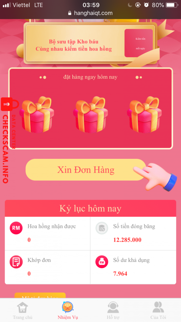 Tổng số tiền bạn có thể rút sau khi hoàn thành đơn hàng là : 117.764vnđ