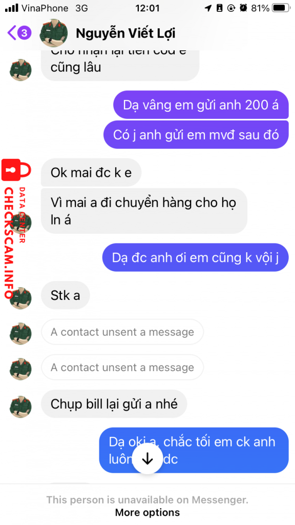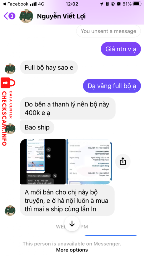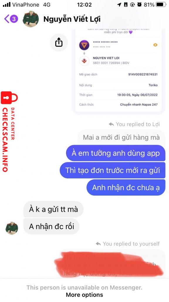 Alerte d'arnaqueur: Nguyễn Viết Lợi