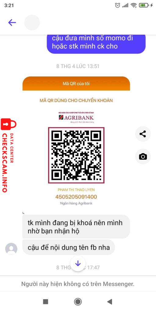 Alerte d'arnaqueur: Phạm Thị Thảo Uyên