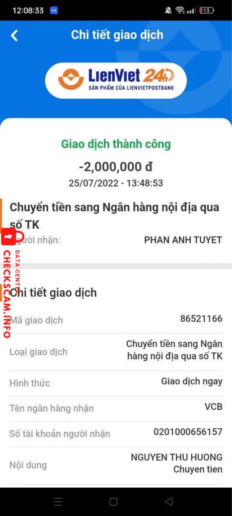 Alerte d'arnaqueur: PHAN ANH TUYET