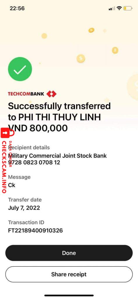 Alerte d'arnaqueur: Phí Thị Thuỳ Linh