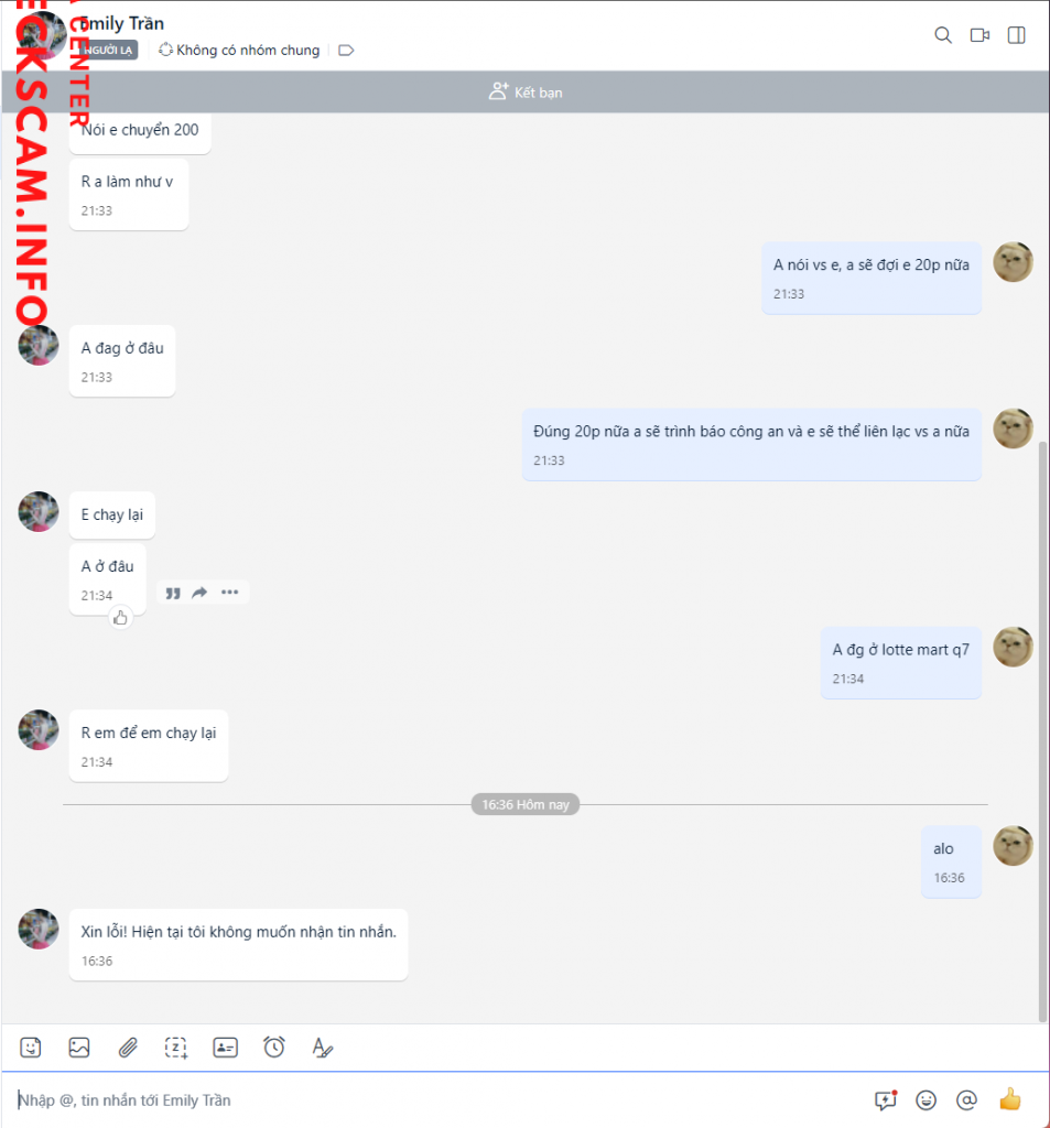 Alerte d'arnaqueur: TRAN DIEM PHUONG