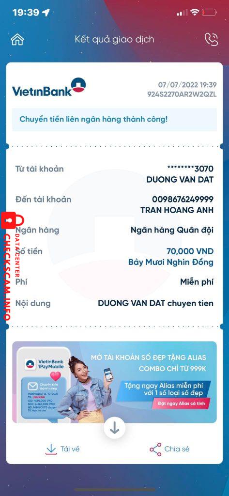 Alerte d'arnaqueur: TRAN HOANG ANH