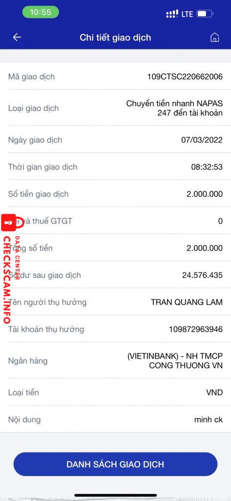 Alerte d'arnaqueur: Trần Quang Lâm