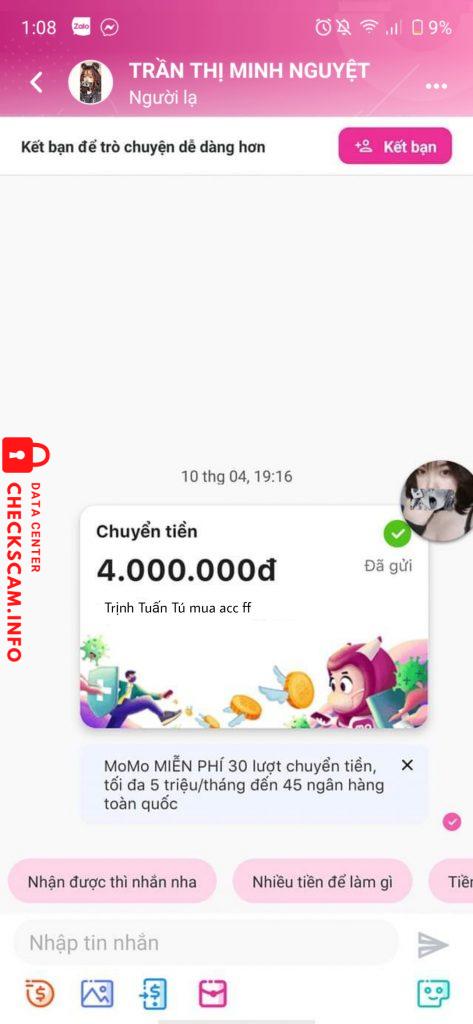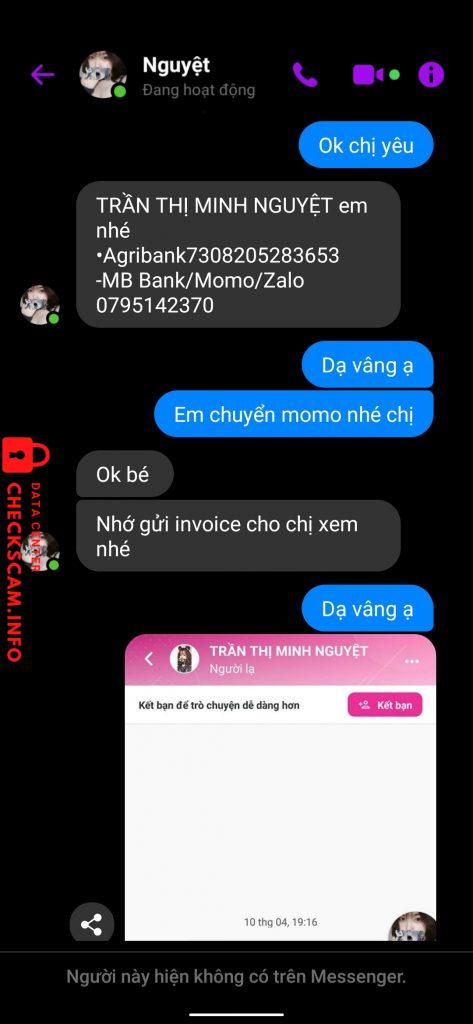 Alerte d'arnaqueur: TRẦN THỊ MINH NGUYỆT