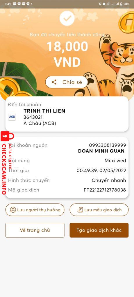 Alerte d'arnaqueur: Trịnh Thị Liêm