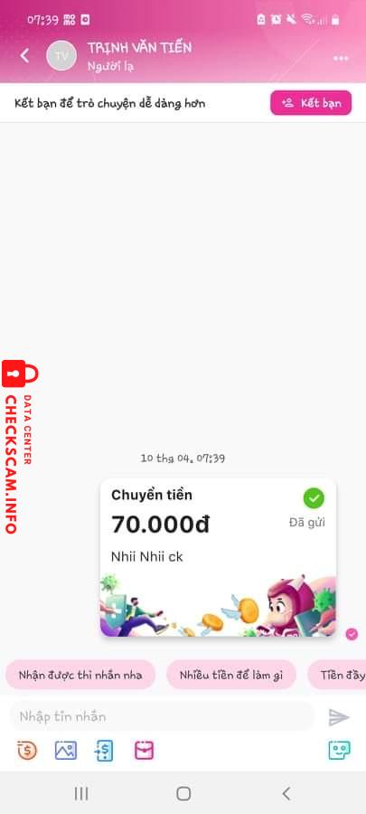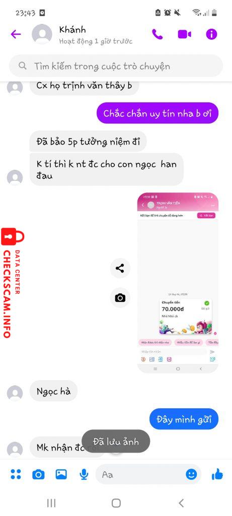 Alerte d'arnaqueur: Trịnh Văn Tiến