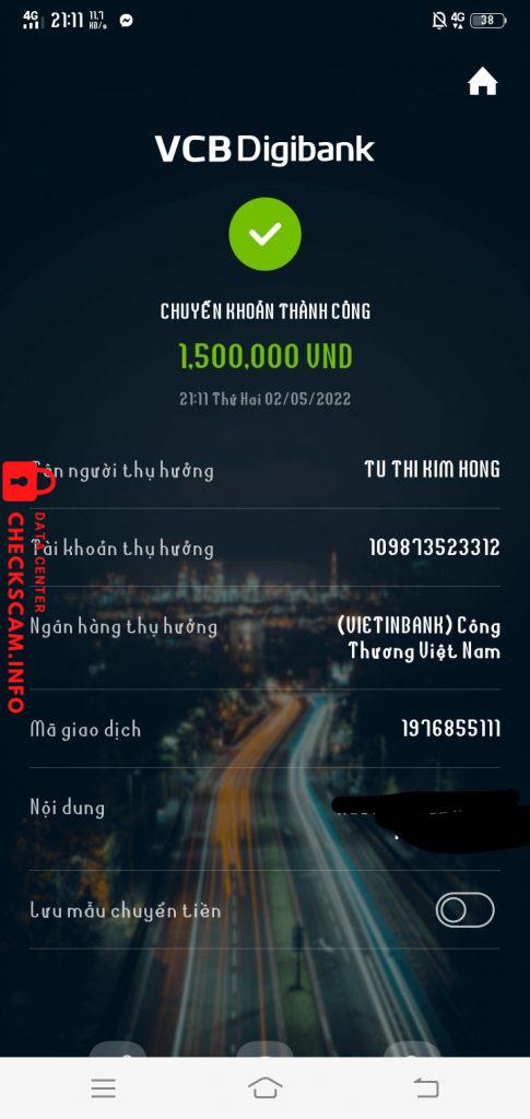 Alerte d'arnaqueur: Tu Thi Kim Hong