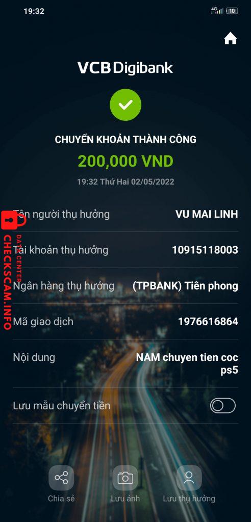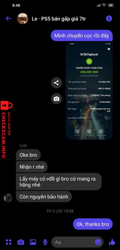 Alerte d'arnaqueur: Vũ Mai Linh