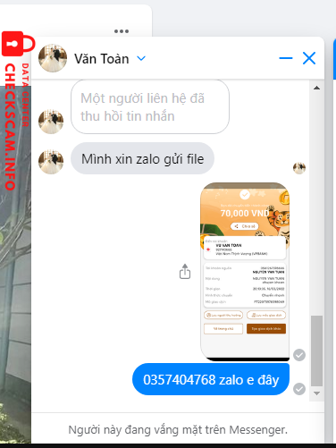 Alerte d'arnaqueur: vu van toan