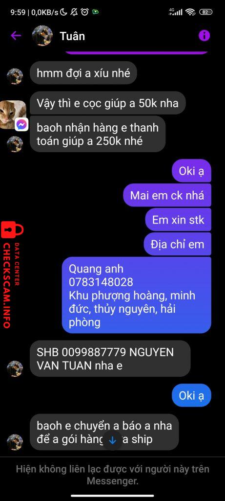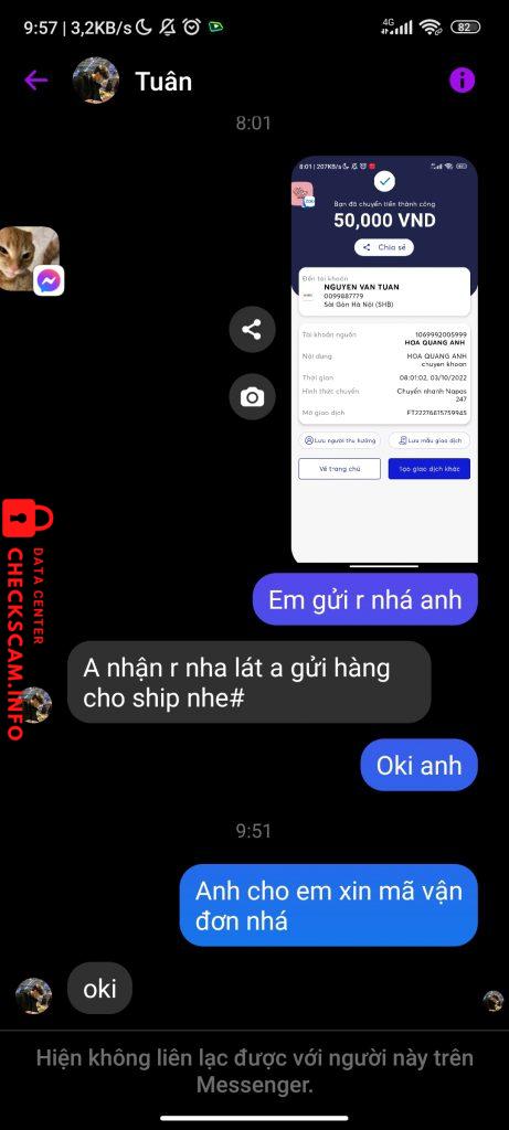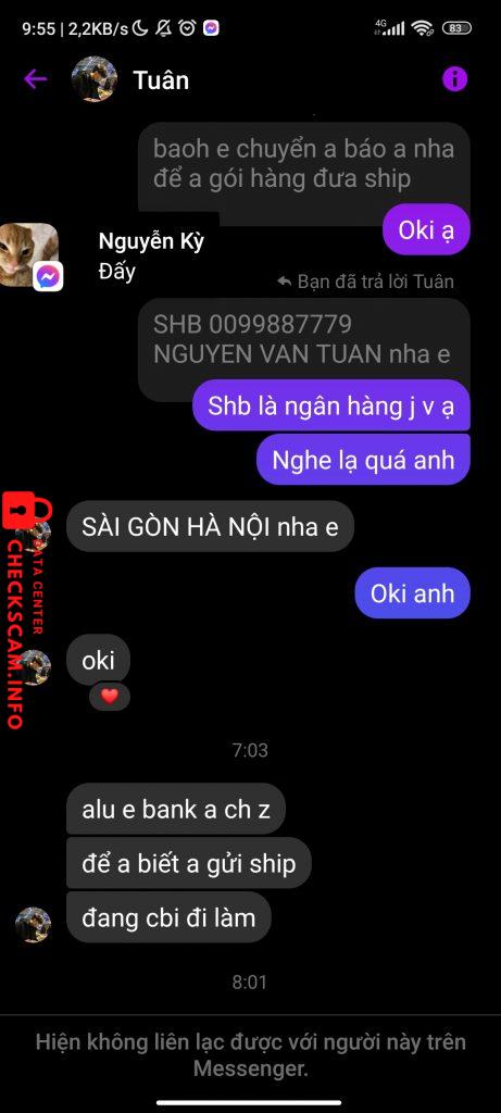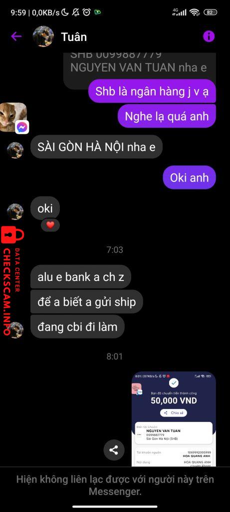 Peringatan Penipu: Văn Tuân Dilaporkan: November 16, 2024 Informasi Penipu Nama Lengkap: Văn Tuân Gerbang Pembayaran: SHB Akun Pembayaran: 0099887779 Kategori: Penipuan marketplace Sumber: Checkscam Berkas Bukti Deskripsi Laporan Scam trả tiền tui 50k Komentar Komentar Anda Tambahkan Komentar Belum ada komentar. Jadilah yang pertama berbagi pengalaman Anda dengan penipu ini.