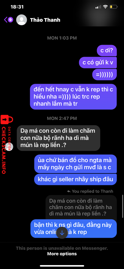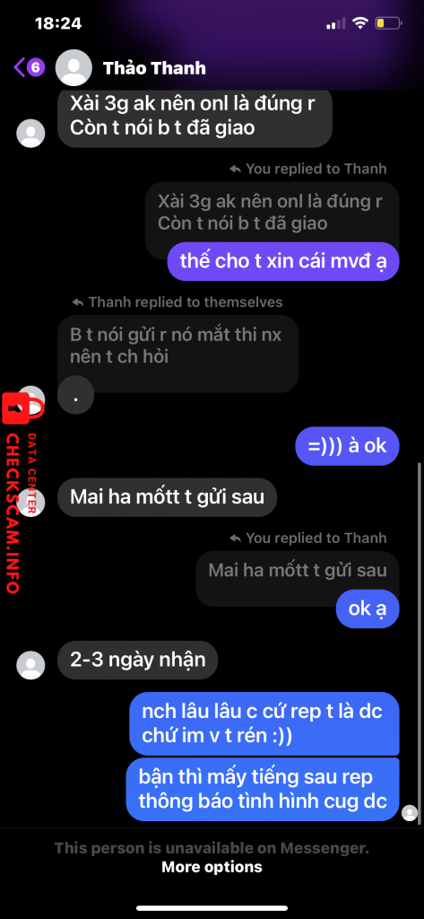 Peringatan Penipu: bui thi dieu Dilaporkan: November 16, 2024 Informasi Penipu Nama Lengkap: bui thi dieu Gerbang Pembayaran: agribank Akun Pembayaran: 7107205466712 Kategori: Penipuan marketplace Sumber: Checkscam Berkas Bukti Deskripsi Laporan bà này scam 300k của t =)) gặp thì né nha Komentar Komentar Anda Tambahkan Komentar Belum ada komentar. Jadilah yang pertama berbagi pengalaman Anda dengan penipu ini.