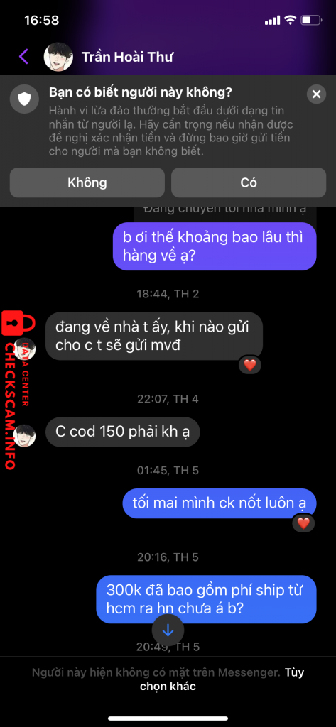 Tên tk là Nguyễn Ngọc Thư, tên fb scam là Trần Hoài Thư.