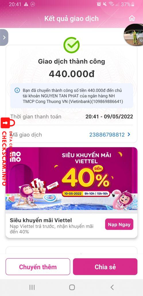 Peringatan Penipu: NGUYỄN TẤN PHÁT Dilaporkan: November 16, 2024 Informasi Penipu Nama Lengkap: NGUYỄN TẤN PHÁT Gerbang Pembayaran: VIETINBANK Akun Pembayaran: 109869886641 Kategori: Penipuan marketplace Sumber: Checkscam Berkas Bukti Deskripsi Laporan Scam 440k, là admin của group 114k mem nào đó Komentar Komentar Anda Tambahkan Komentar Belum ada komentar. Jadilah yang pertama berbagi pengalaman Anda dengan penipu ini.