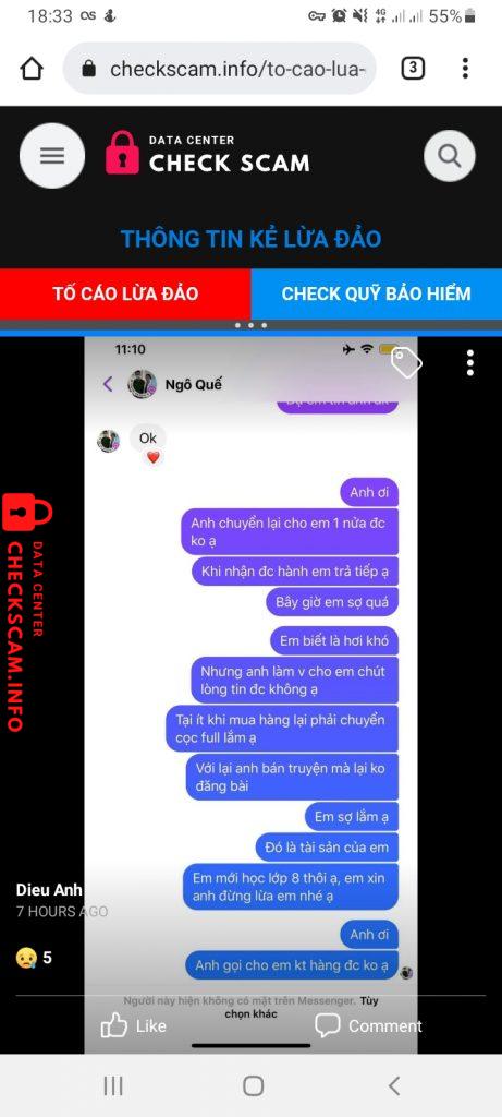 Peringatan Penipu: Nguyễn Thế Quế Dilaporkan: November 16, 2024 Informasi Penipu Nama Lengkap: Nguyễn Thế Quế Gerbang Pembayaran: SeABank Akun Pembayaran: 000005010605 Kategori: Penipuan marketplace Sumber: Checkscam Berkas Bukti Deskripsi Laporan Bắt chuyển tiền hàng trước rồi chặn liên lạc Komentar Komentar Anda Tambahkan Komentar Belum ada komentar. Jadilah yang pertama berbagi pengalaman Anda dengan penipu ini.