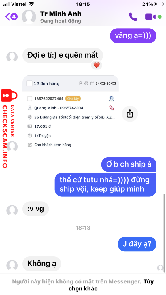 Peringatan Penipu: Nguyễn Thị Kim Anh Dilaporkan: November 16, 2024 Informasi Penipu Nama Lengkap: Nguyễn Thị Kim Anh Gerbang Pembayaran: Mb bank Akun Pembayaran: 2265110506 Kategori: Penipuan marketplace Sumber: Checkscam Berkas Bukti Deskripsi Laporan Bạn này lừa đảo mình 150k, spy 1-4+spy 6 đb unseal Komentar Komentar Anda Tambahkan Komentar Belum ada komentar. Jadilah yang pertama berbagi pengalaman Anda dengan penipu ini.