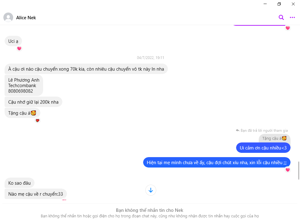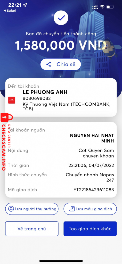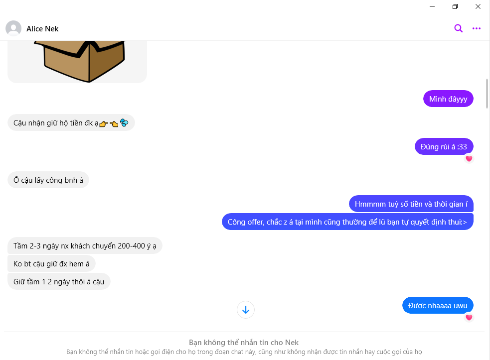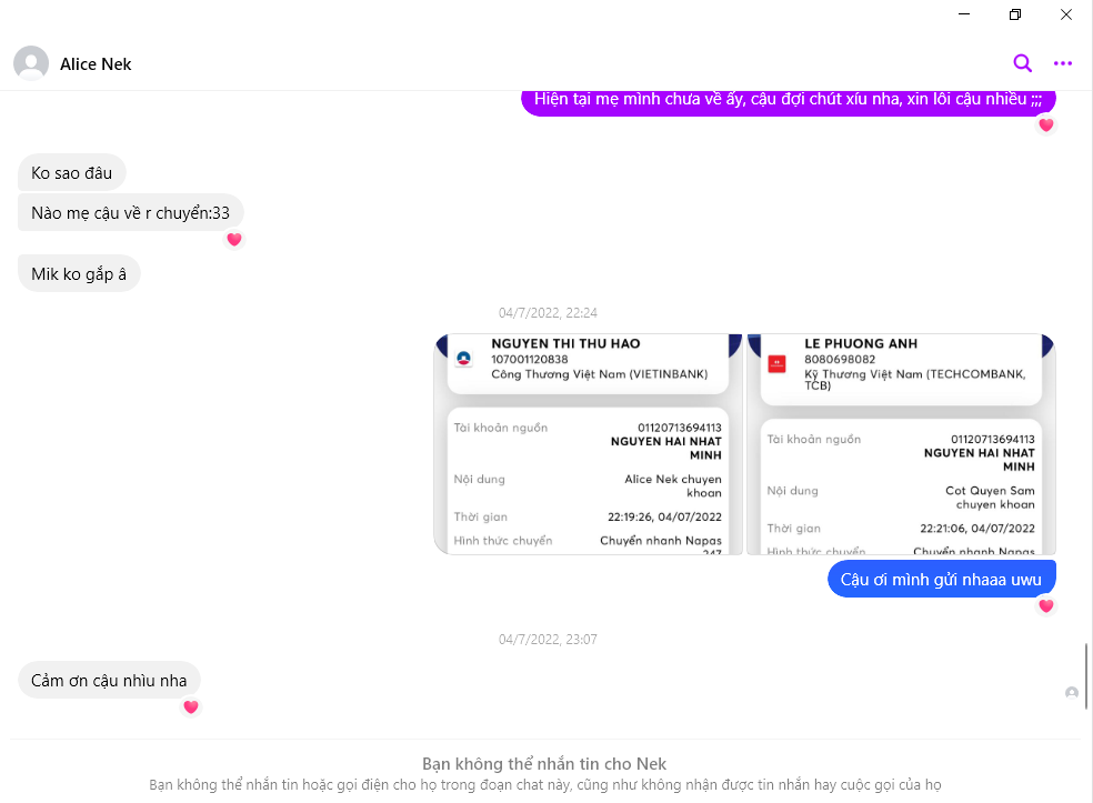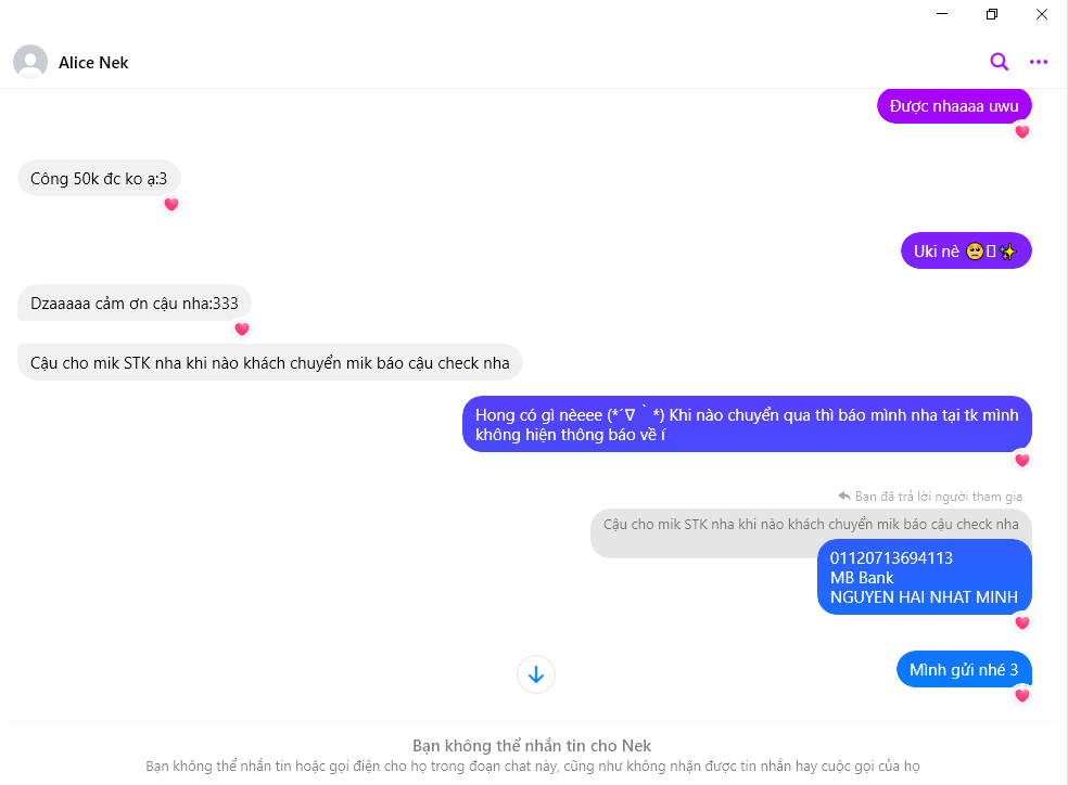 Peringatan Penipu: Nguyen Thi Thu Hao Dilaporkan: November 16, 2024 Informasi Penipu Nama Lengkap: Nguyen Thi Thu Hao Gerbang Pembayaran: VietinBank Akun Pembayaran: 107001120838 Kategori: Penipuan marketplace Sumber: Checkscam Berkas Bukti Deskripsi Laporan Đồng loã lừa đảo 1tr650k Komentar Komentar Anda Tambahkan Komentar Belum ada komentar. Jadilah yang pertama berbagi pengalaman Anda dengan penipu ini.