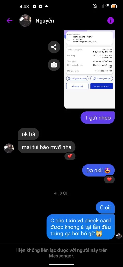 Peringatan Penipu: THAI THANH NHAT Dilaporkan: November 16, 2024 Informasi Penipu Nama Lengkap: THAI THANH NHAT Gerbang Pembayaran: TP Bank Akun Pembayaran: 17110377483 Kategori: Penipuan marketplace Sumber: Checkscam Berkas Bukti Deskripsi Laporan Scam tiền của hơn 50 người ! Komentar Komentar Anda Tambahkan Komentar Belum ada komentar. Jadilah yang pertama berbagi pengalaman Anda dengan penipu ini.