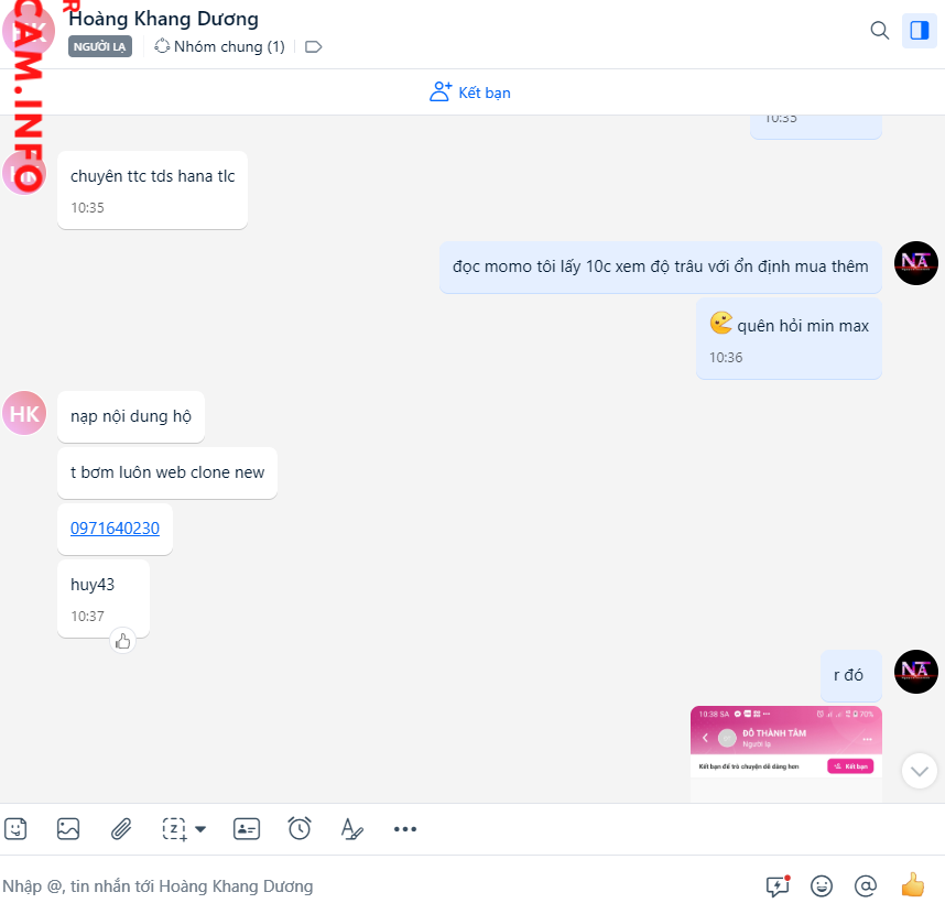 詐欺師警告: Đỗ Thành Tâm 報告済み: November 16, 2024 詐欺師情報 氏名: Đỗ Thành Tâm 電話番号: 0971640230 決済ゲート: MOMO 決済アカウント: 0971640230 カテゴリー: マーケットプレイス詐欺 ソース: Checkscam 証拠ファイル 報告の説明 Lừa đảo bán clone giao tiền không giao clone コメント あなたのコメント コメントを追加 まだコメントはありません。この詐欺師についての経験を最初に共有しましょう。