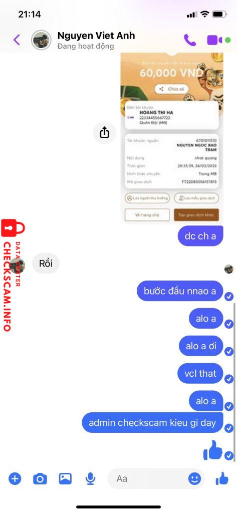 詐欺師警告: HOANG THI HA 報告済み: November 16, 2024 詐欺師情報 氏名: HOANG THI HA 電話番号: 0904795978 ソーシャルメディアリンク: https://www.facebook.com/TrannguyenAdminGdtg 決済ゲート: Mb bank 決済アカウント: 22334455667722 カテゴリー: マーケットプレイス詐欺 ソース: Checkscam 証拠ファイル 報告の説明 Lừa đảo bán tut dame Fake web checkscamviet.info để lấy uy tín Link fb nó https://www.facebook.com/TrannguyenAdminGdtg コメント あなたのコメント コメントを追加 まだコメントはありません。この詐欺師についての経験を最初に共有しましょう。