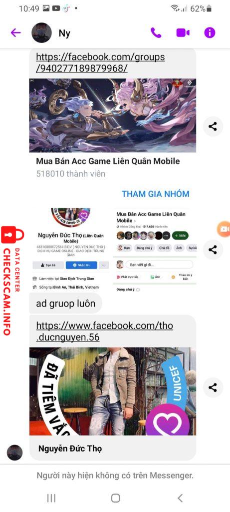 Chủ nhóm mà lại lừa đảo, lừa mình hết mất 1 cái acc game giá 2tr số tiền đó đối với mình thì rất lớn mong mọi người giúp mình với ạ, các bill và tin nhắn mình đã chụp phía trên ạ, lừa mình mất 1 cái acc game liên quân mình mới mua rồi bán lại tại nghĩ chơi và acc trắng thông tin ạ, ủa mình cũng là người bán chứ =(( mong ad diệt giúp mình. mình sử dụng 5 cái facebook nên kiếm đc vài thông tin ạ