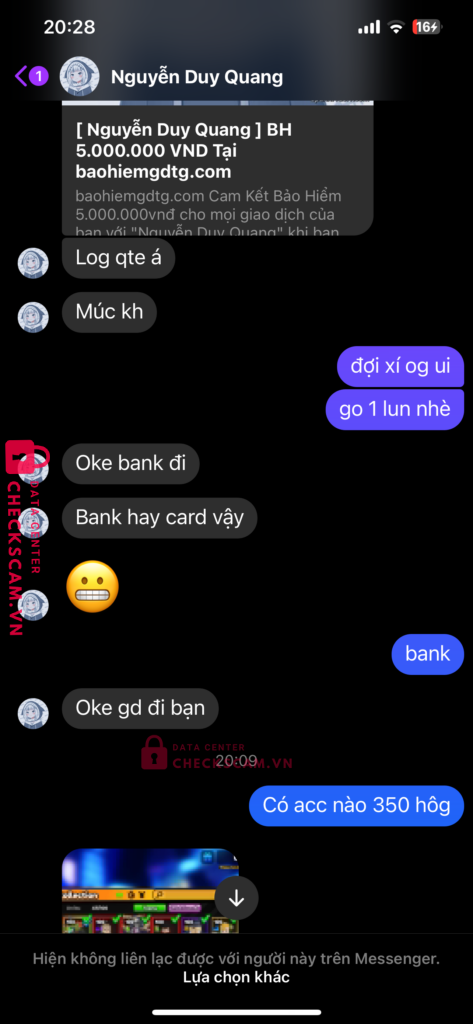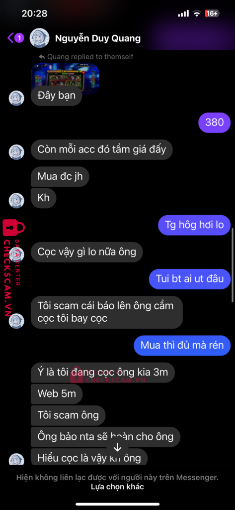 詐欺師警告: Nguyễn Duy Quang 報告済み: March 7, 2025 詐欺師情報 氏名: Nguyễn Duy Quang 決済ゲート: Mb 決済アカウント: 6606042006 カテゴリー: マーケットプレイス詐欺 ソース: Checkscam 証拠ファイル 報告の説明 Scam nha ae né コメント あなたのコメント コメントを追加 まだコメントはありません。この詐欺師についての経験を最初に共有しましょう。